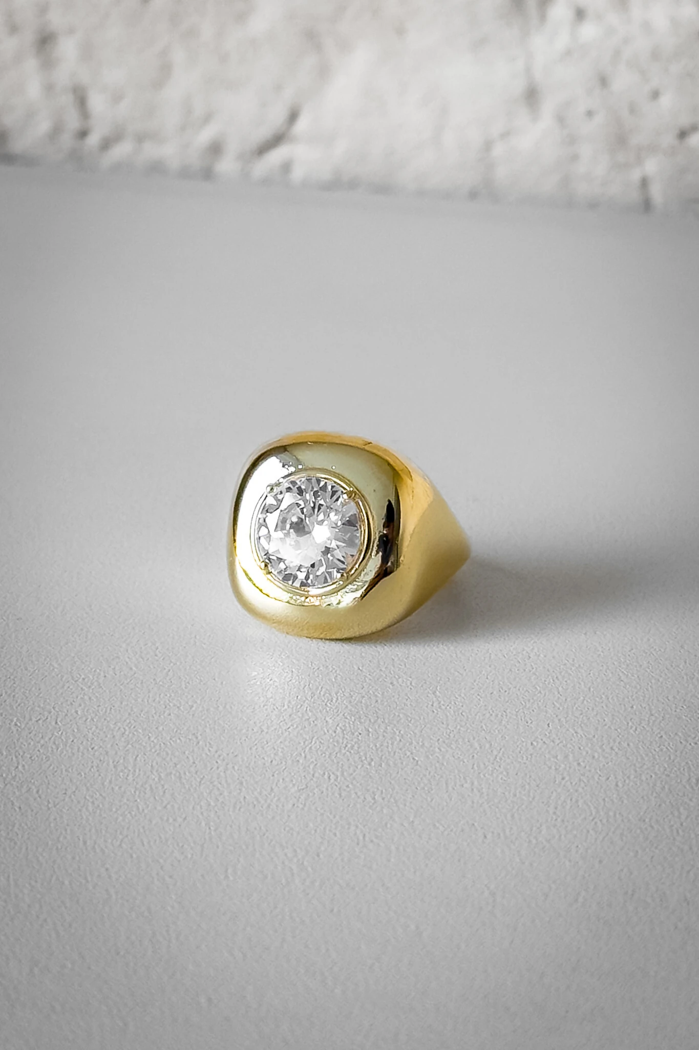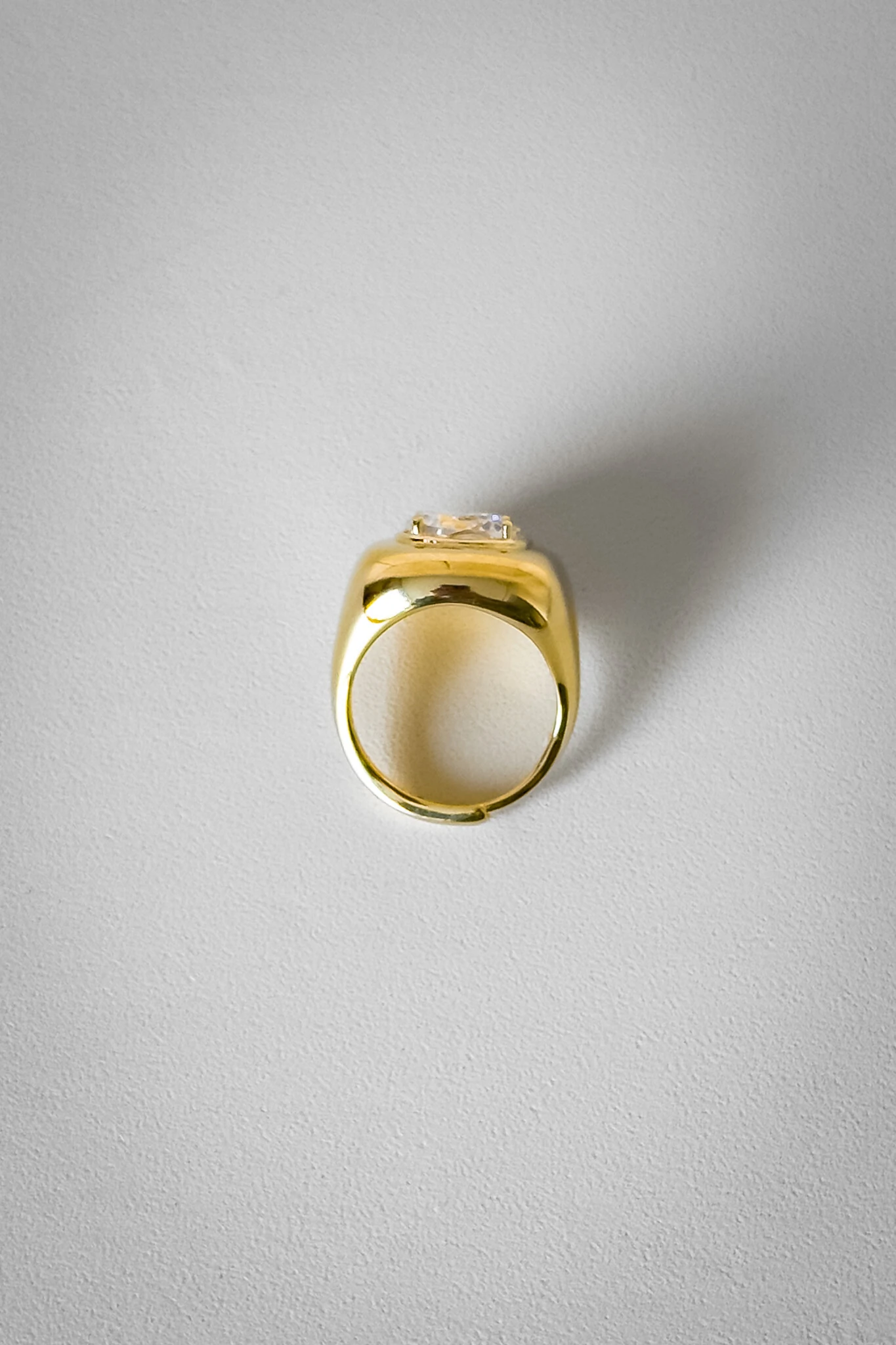O Anel Zircônia Central | Banho de Ouro 18k | Sofisticado é uma joia que une brilho e elegância em um design imponente.
