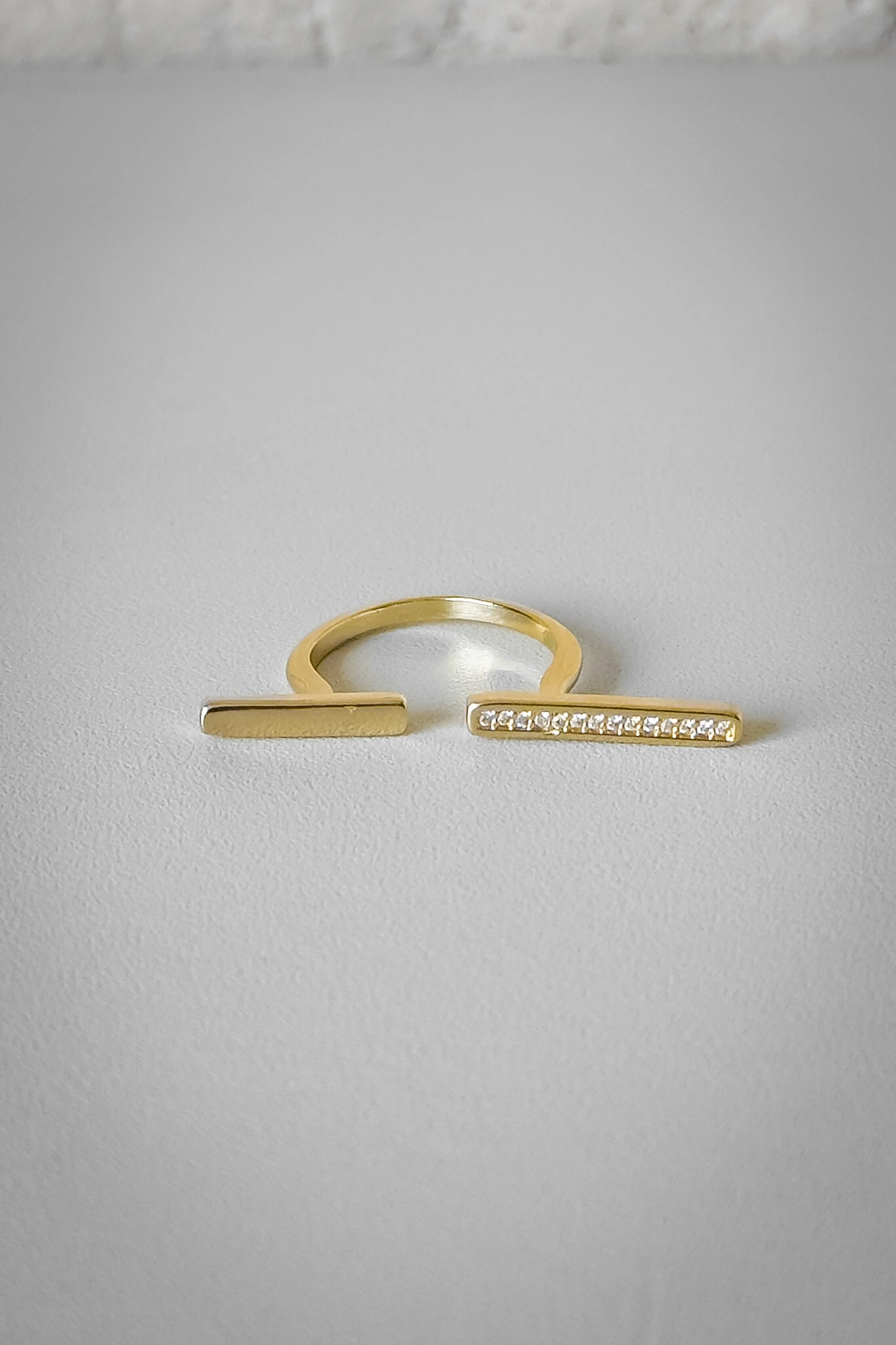 Anel Barra Dupla Ajustável | Banho Ouro 18k | Minimalista