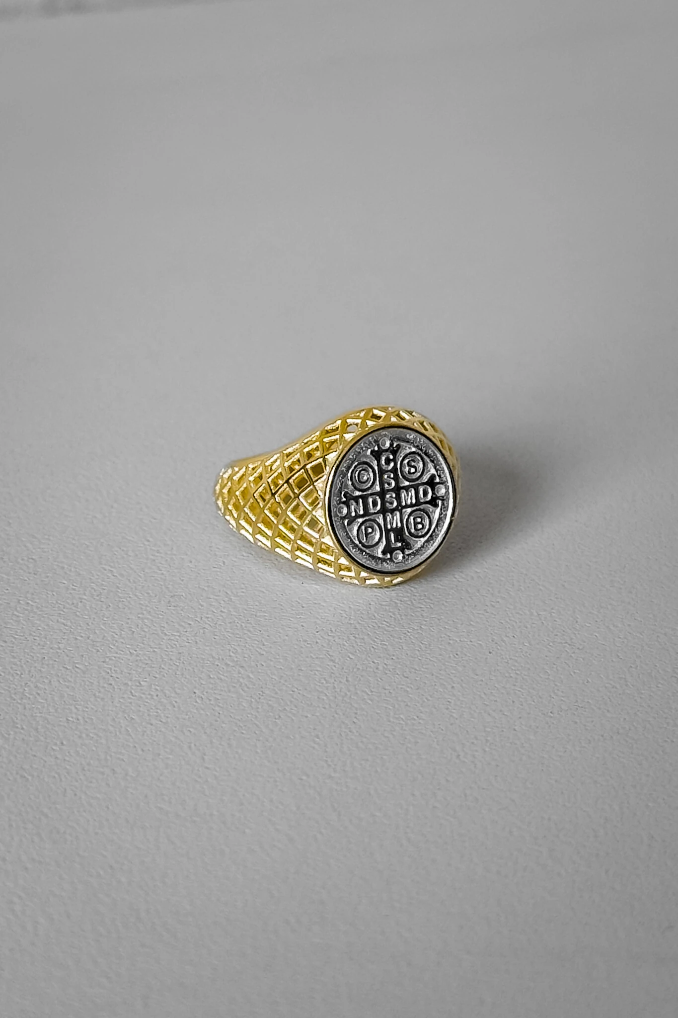 A medalha de São Bento simboliza proteção, força espiritual e luz — tornando este anel não só um acessório estiloso, mas também um amuleto de significado profundo.