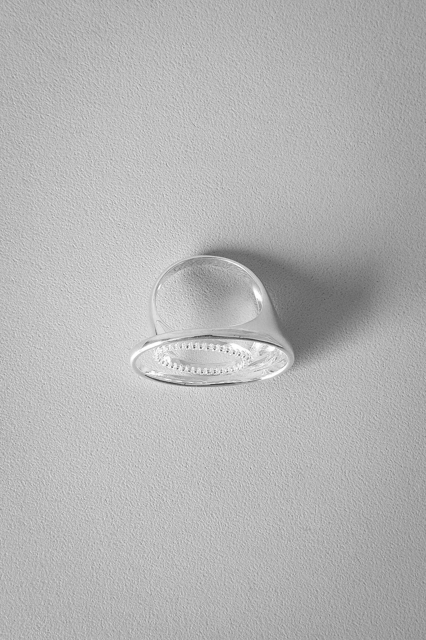 Anel Vazado Detalhe Oval Cravejado | Prata 925 | Geométrico
