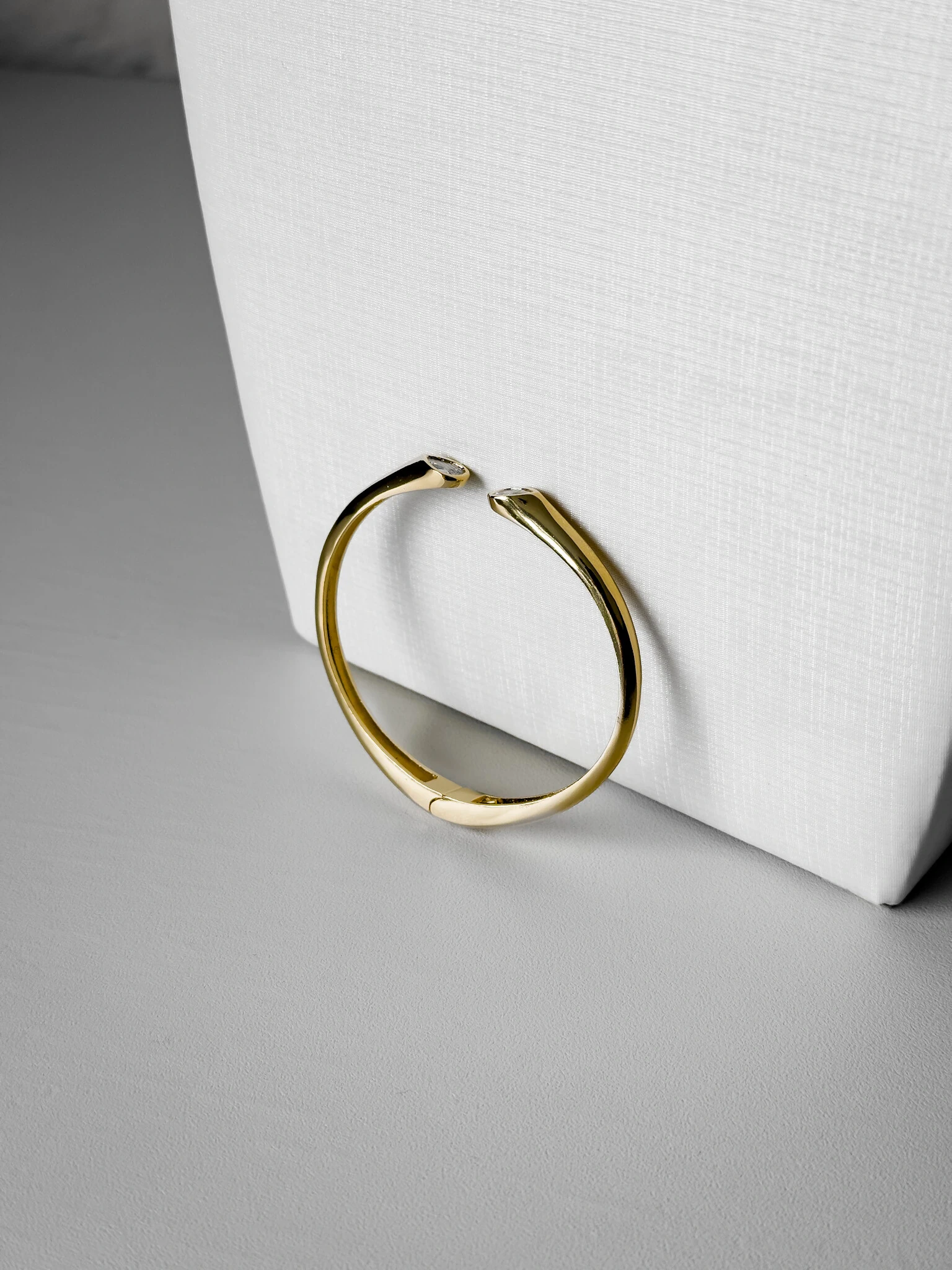 O Bracelete Aberto Pontas Cravejadas em Banho Ouro 18k é a união perfeita entre delicadeza e elegância. Com design moderno e acabamento polido, ele traz duas pontas cravejadas que refletem a luz com sutileza, tornando a peça ideal para complementar produções sofisticadas, tanto no dia a dia quanto em ocasiões especiais.