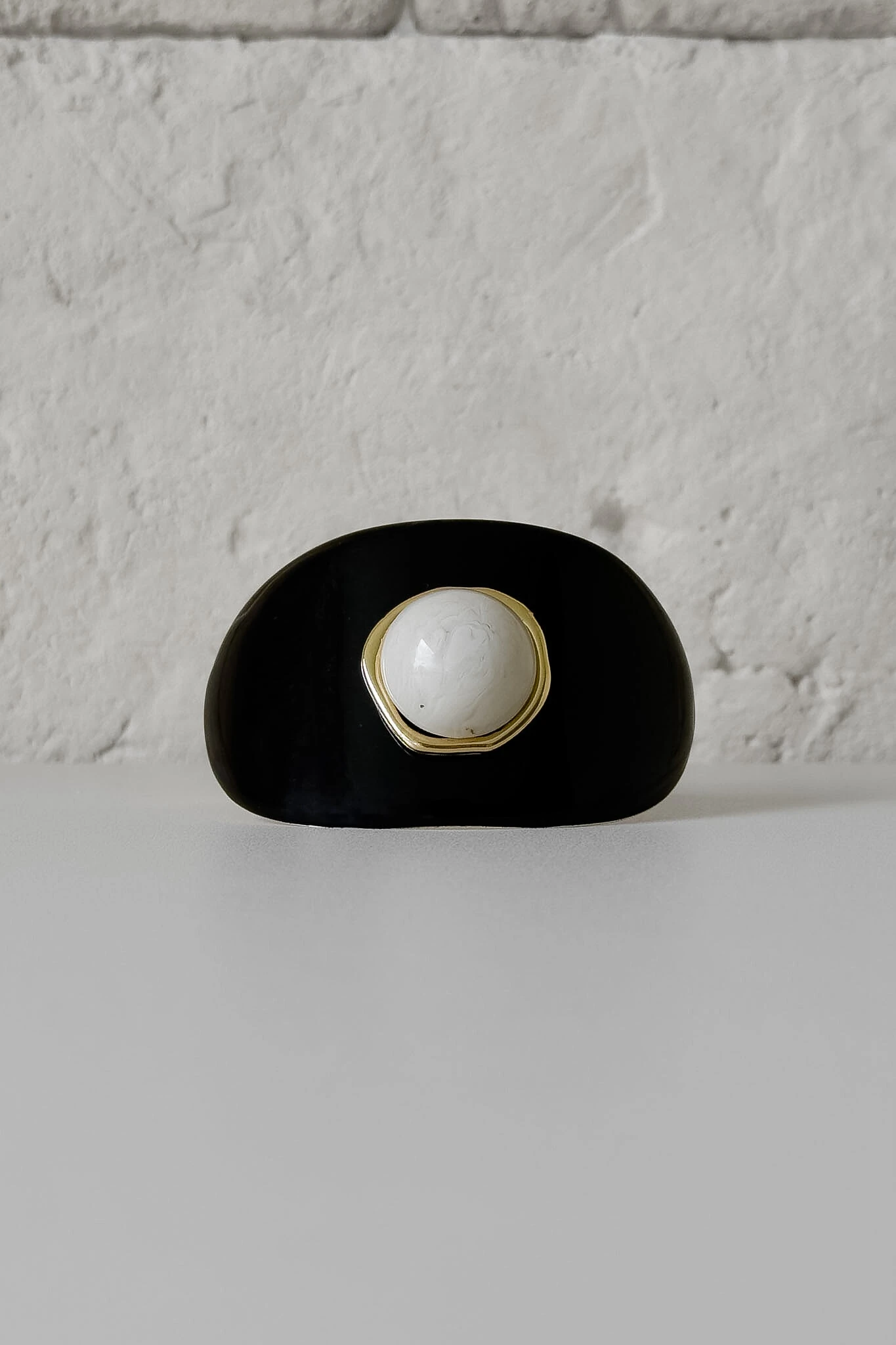 O Bracelete Resina Preto & Off-White | Moderno é aquela peça statement que transforma qualquer look com zero esforço. Seu design amplo, contemporâneo e orgânico traz um centro off-white em resina que contrasta com o corpo preto, criando uma combinação sofisticada e super atual.