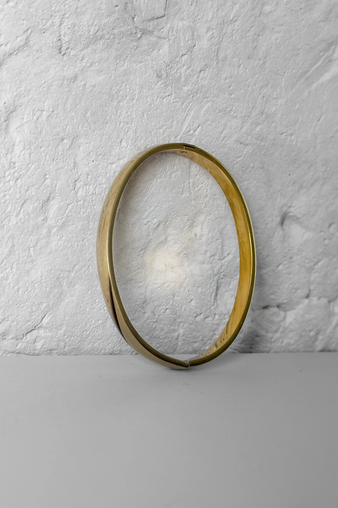 Diferente das argolas redondas comuns, este bracelete possui um design oval anatômico que se encaixa perfeitamente ao pulso, evitando que a peça fique girando ou incomodando. Seu acabamento liso e espelhado reflete a luz de forma incrível, tornando-o uma peça chave tanto para usar sozinha, num visual "clean", quanto para compor um mix de pulseiras poderoso. Possui um sistema de fecho articulado com trava de segurança, prático de colocar e tirar.