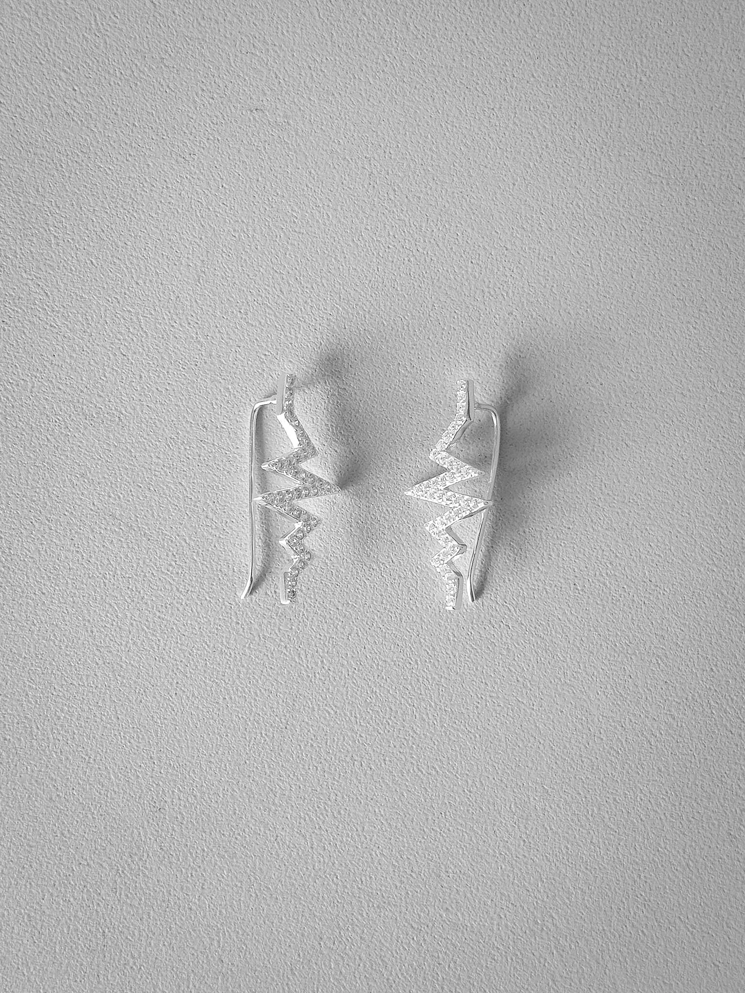 Design: Ear Climber com formato de linha da vida (zig-zag).