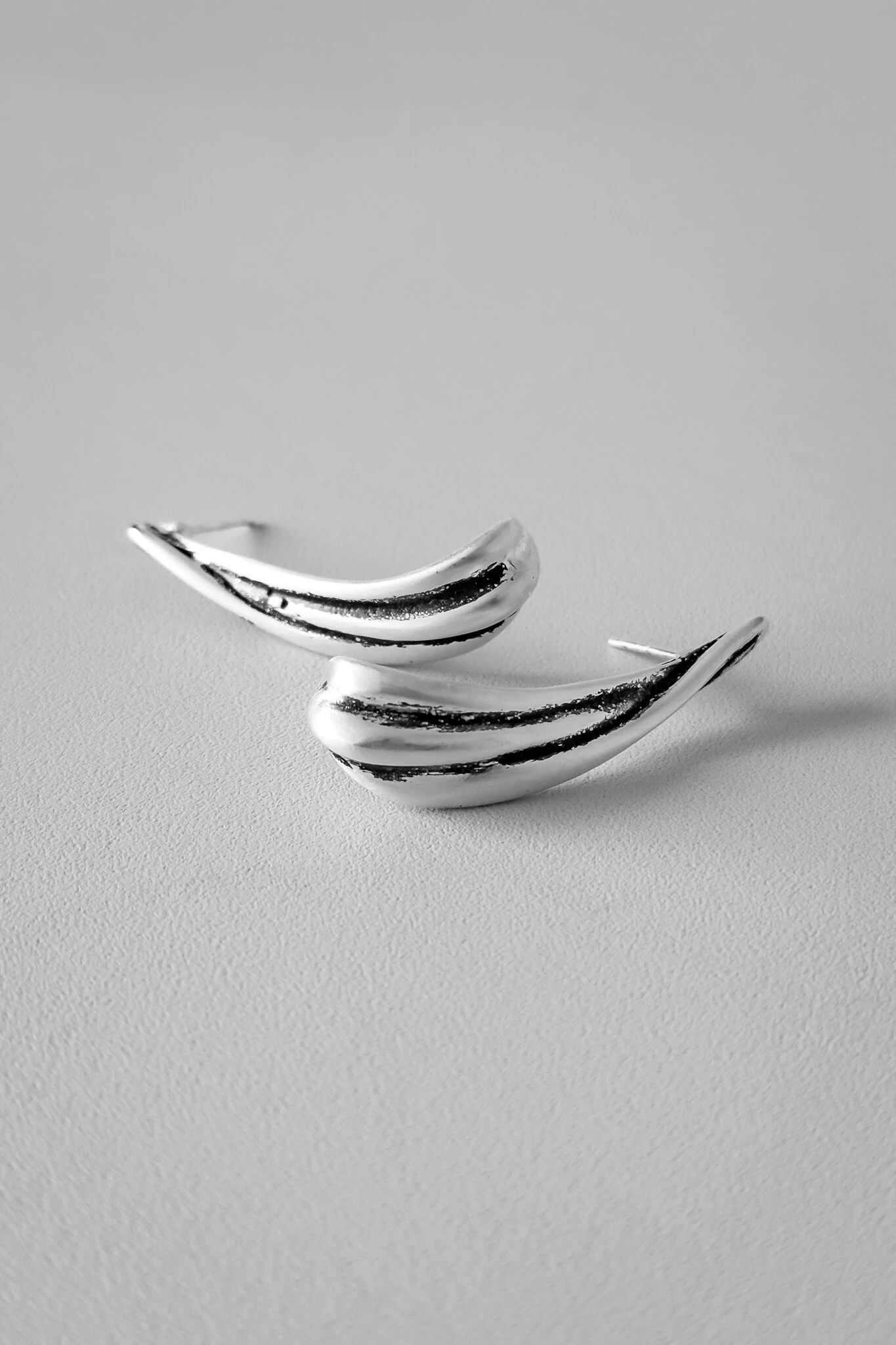 O Brinco Pena Esculpida em Banho Prata 925 é uma peça que traduz leveza e elegância em um design marcante.