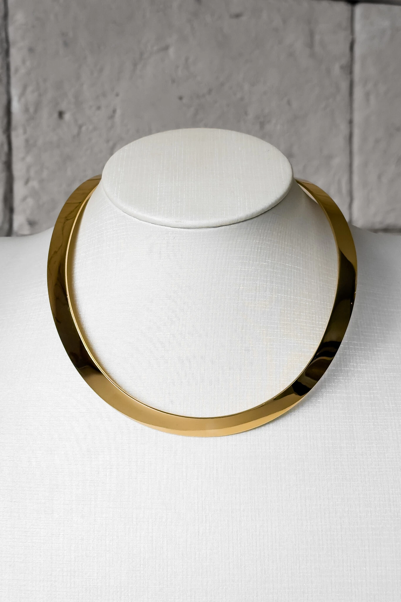 A Choker Achatada Aberta com banho de Ouro 18k é uma peça de presença marcante, perfeita para mulheres que gostam de acessórios com design moderno e minimalista. Seu formato rígido e abertura frontal garantem praticidade ao vestir, enquanto o banho Ouro 18k proporciona brilho intenso e acabamento sofisticado.