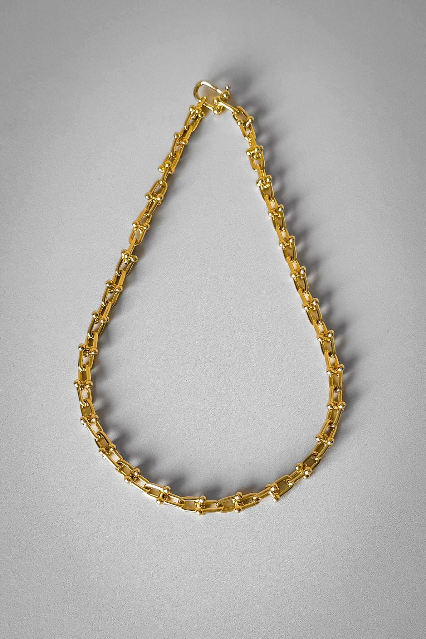 O colar de elos geométricos pequenos em banho de ouro 18k é uma peça atemporal e cheia de sofisticação. Com 45 cm de comprimento, é ideal para ser usado sozinho, em destaque, ou em composições com outros colares, criando camadas modernas e elegantes.