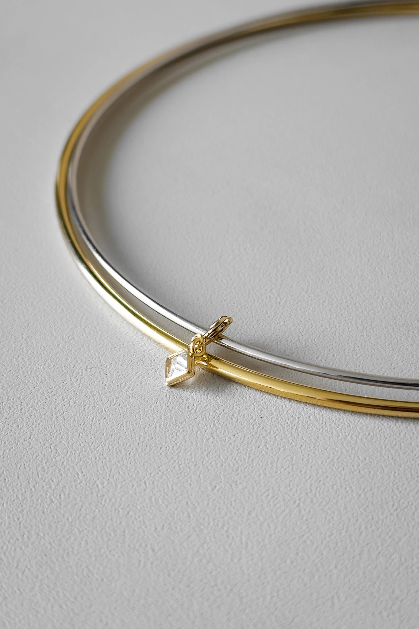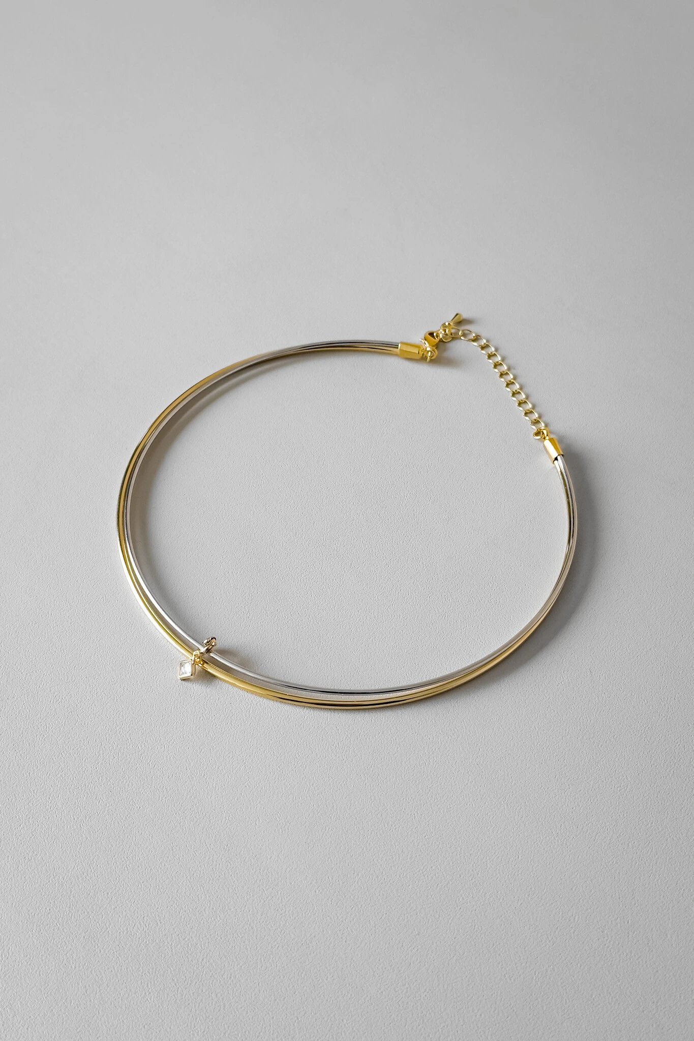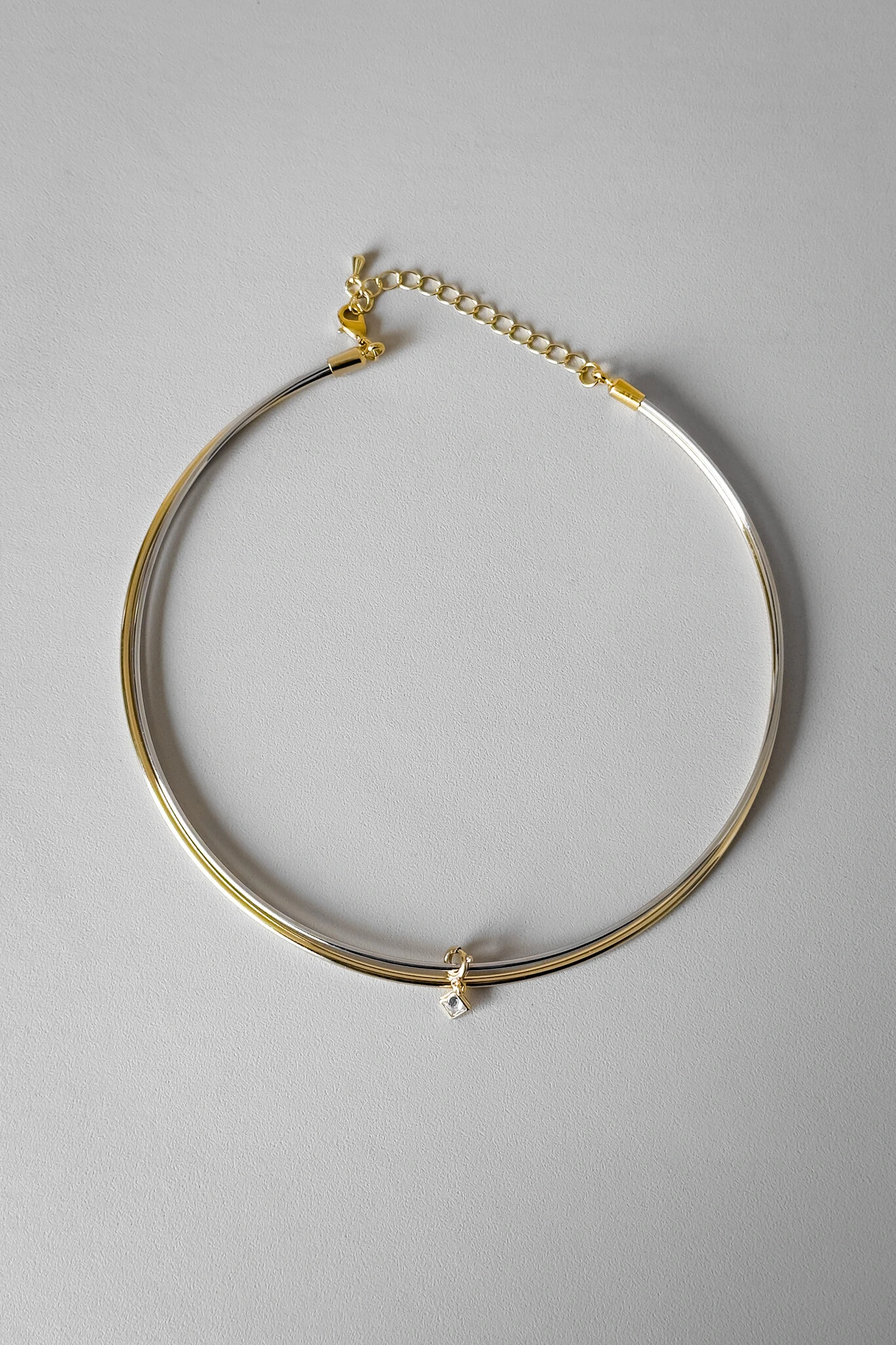 O Colar Choker Duplo Pingente em Banho Ouro 18k e Ródio é uma peça moderna, elegante e cheia de presença. Seu design rígido e minimalista une duas cores metálicas — o dourado quente do Ouro 18k e o brilho frio do Ródio — criando um contraste sofisticado e atual.
