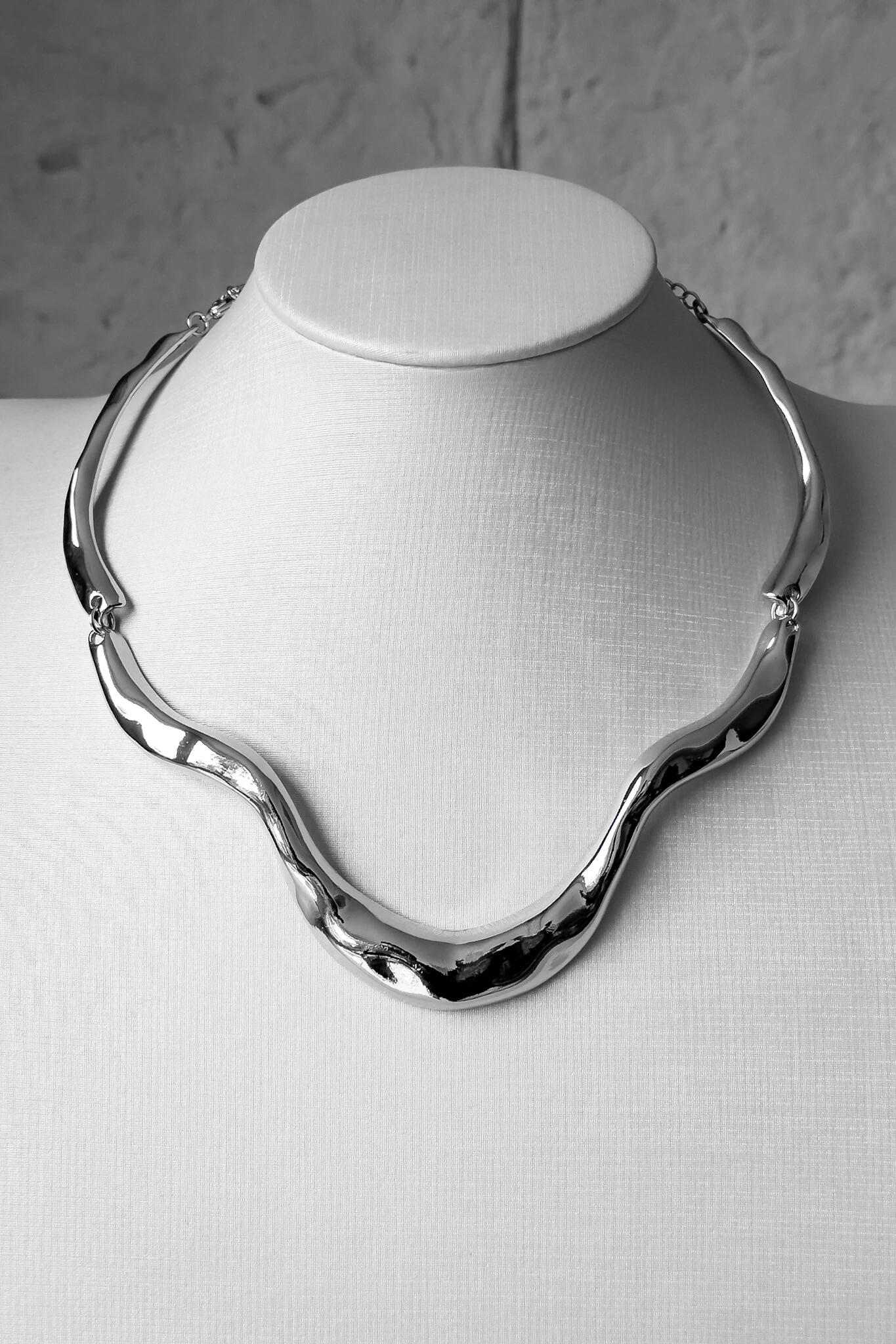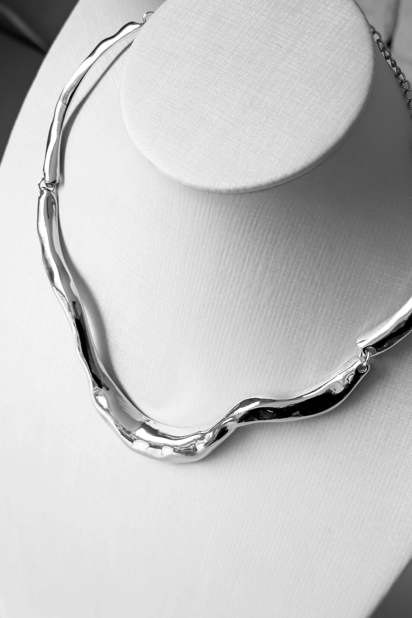 O Colar Orgânico Abstrato em Banho Ródio é uma peça que traduz arte e elegância em forma de joia. Seu design fluido e curvilíneo cria um visual escultural e moderno, valorizando o colo de forma única. O acabamento polido em tom prateado confere brilho e sofisticação, tornando-o o destaque perfeito para eventos ou produções minimalistas com toque de estilo.