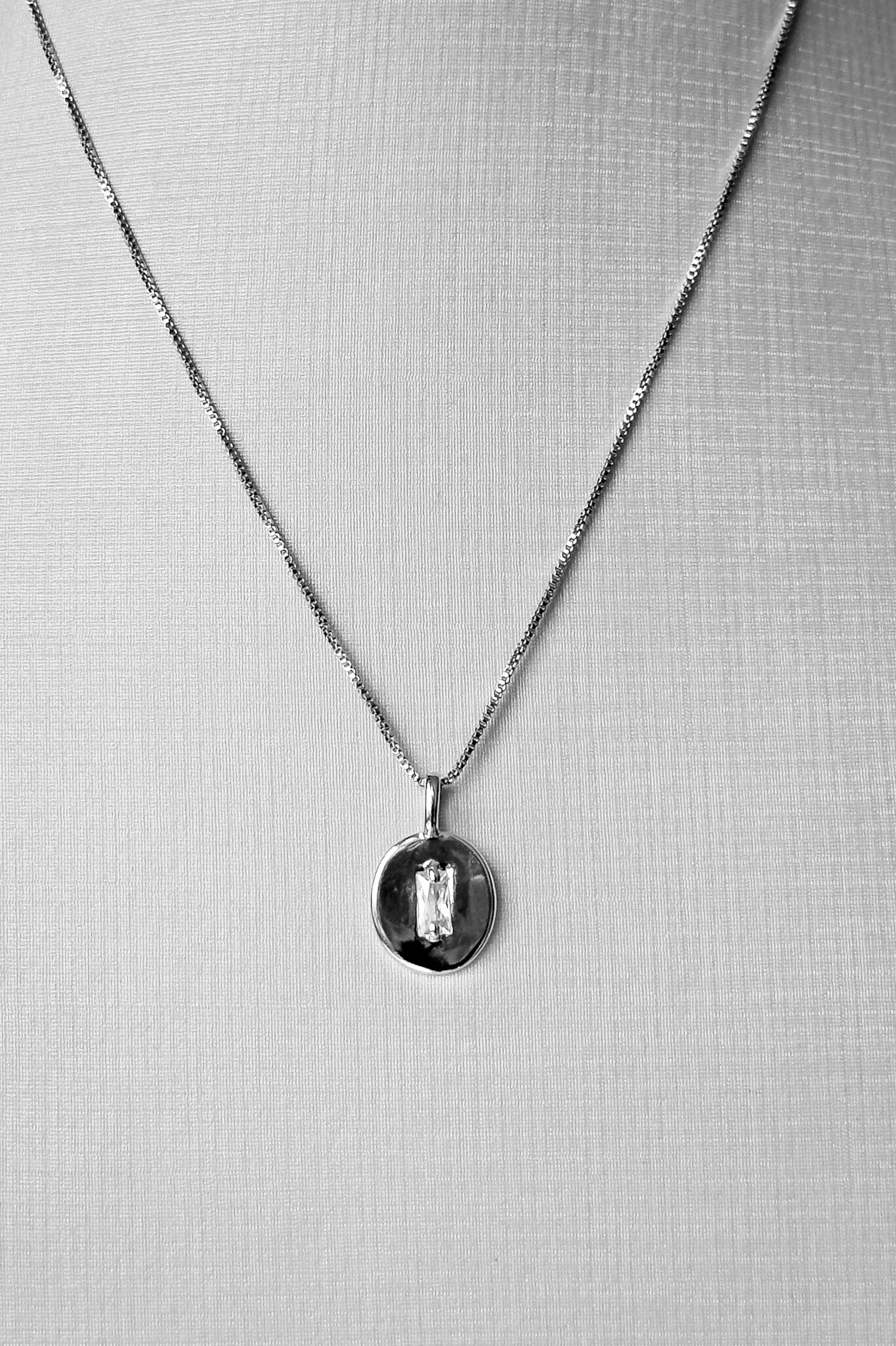 O Colar Pingente Redondo Cravejado em Banho Ródio é uma joia clássica que nunca sai de moda. O pingente circular espelhado destaca uma pedra central em corte retangular, que adiciona um brilho delicado e refinado ao visual. Ideal para quem busca elegância minimalista e um toque moderno no look.