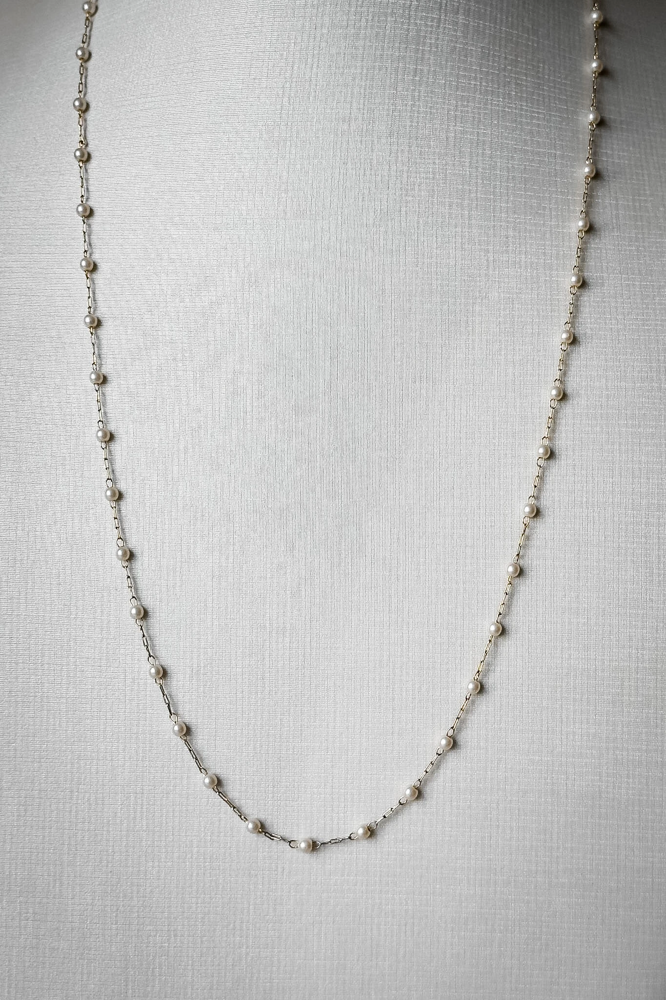 Com 60 cm de comprimento, esta peça apresenta pérolas distribuídas por toda a sua extensão, criando um visual delicado e sofisticado que nunca sai de moda.