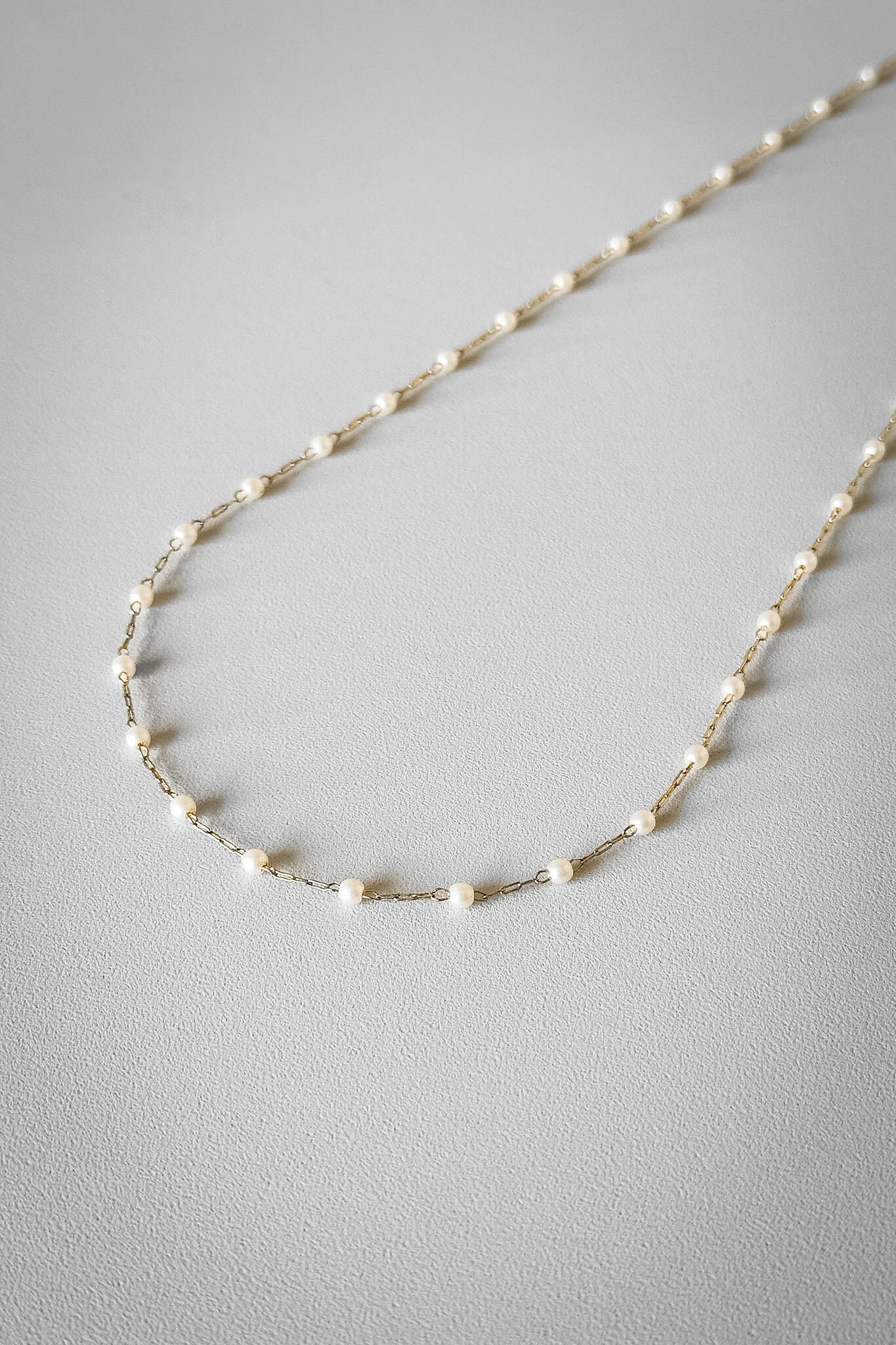 A Corrente com Pérolas e banho de ouro 18k é a definição de elegância clássica.