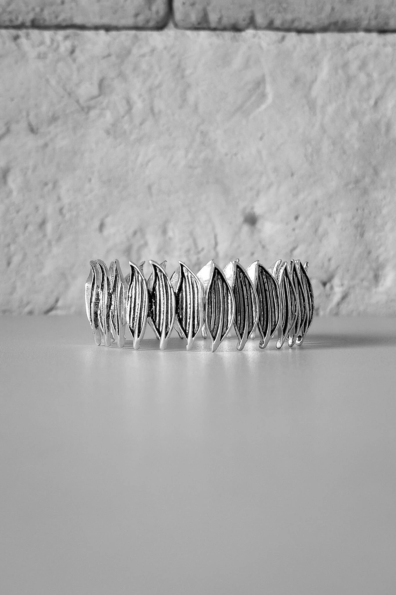 A Pulseira Folha Esculpida em Banho Prata 925 é uma peça que traduz a leveza e o movimento natural das formas orgânicas.